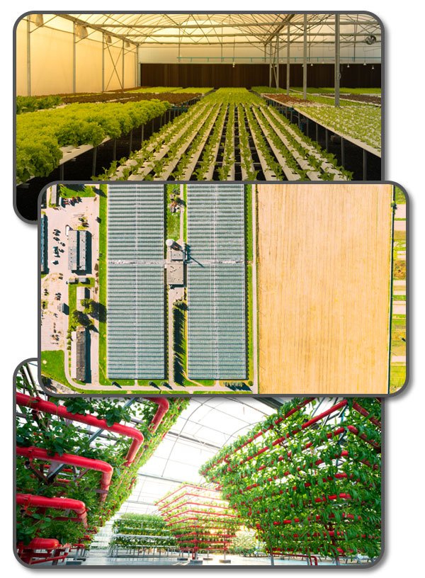 Vertical Farming: Our vertical farming installations maximize space and resource use, allowing us to grow a variety of crops year-round in controlled environments. This method supports high-density food production with minimal land use.